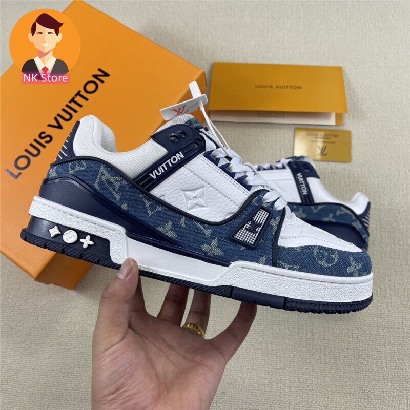 Tênis 100 % original Da Moda LV Trainer Branco E Azul Casual Para Casais De Homens Mulheres