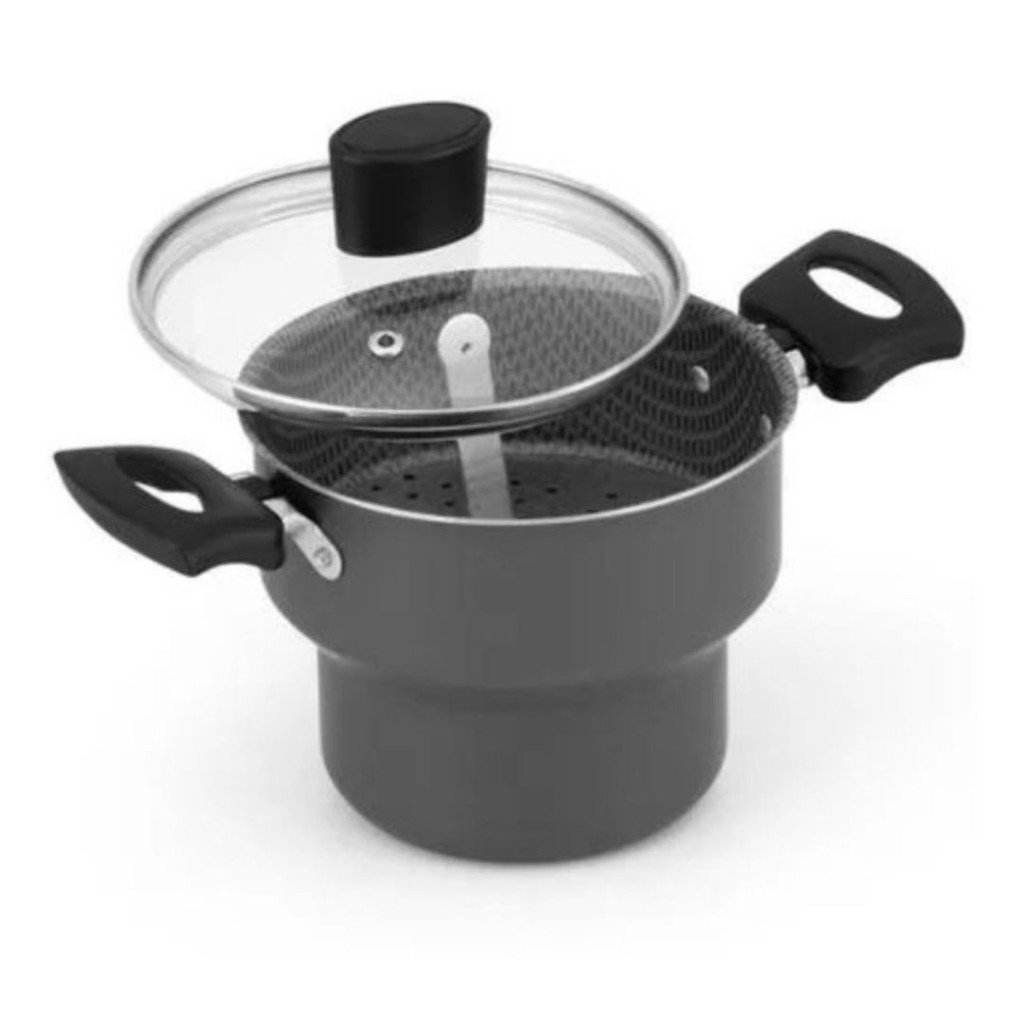 Cuscuzeira Antiaderente Com Tampa De Vidro Teflon Cuscuz Nordeste N16 Preto