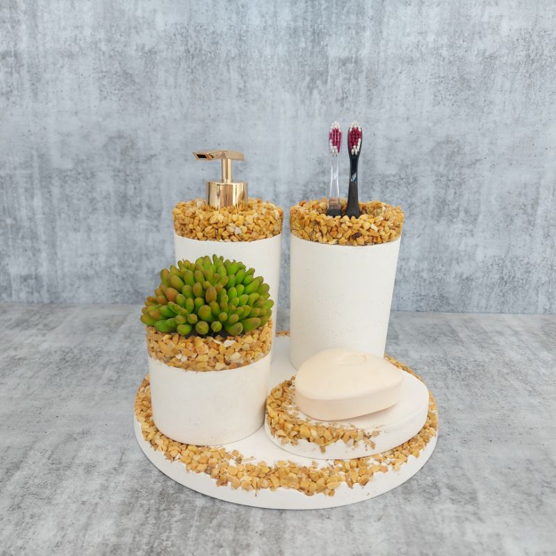 Kit Amsterdam para Lavabo ou banheiro em granilite ou marmorizado com saboneteira líquida difusor de ambiente porta escova e sabonete