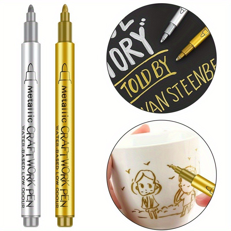 4 Pçs Ouro Prata Metálico Marcador Conjunto Caneta De Pintura Marcadores De Arte Permanente À Prova Dwaterproof Água Gra