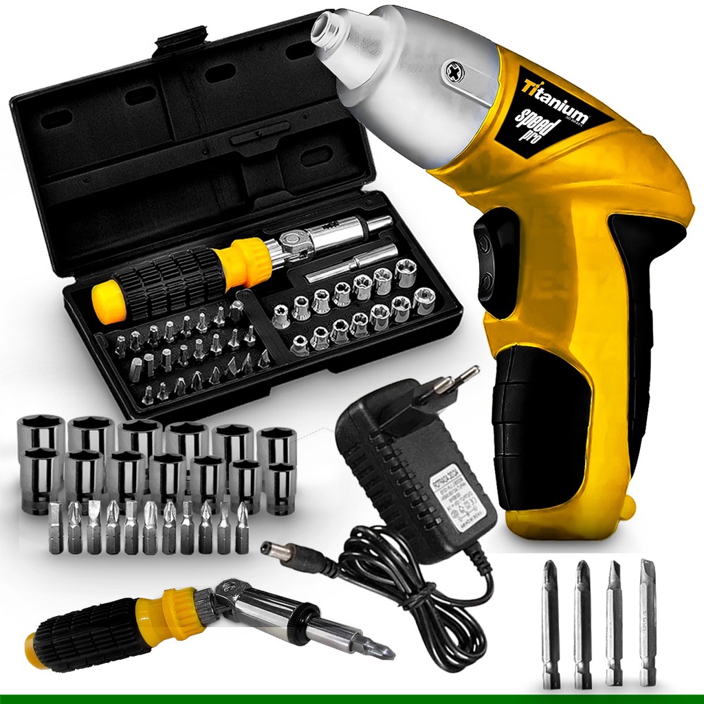 Kit Parafusadeira Speed Pro 4.8V Bivolt C/ Jogo de Ferramentas 200 Peças - Titanium