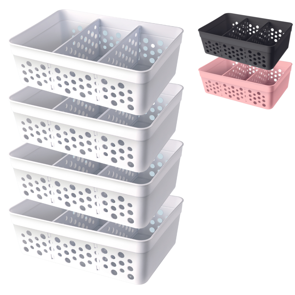 Kit 4 Cestos Organizadores com 2 Divisórias 17cmx11,5cmx5,5cm Cestinho Colméia com Divisória Removível