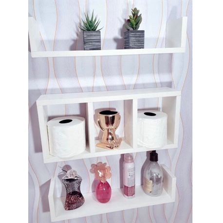 Nicho 2 Prateleira U + 1 Nicho Com Divisória 100% Mdf Branco p\Banheiro