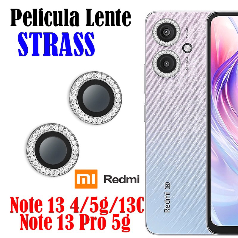 Kit 2 Peças Película De Câmera Diamante Strass REDMI 13C/NOTE 13/NOTE 13 PRO 4G/NOTE 13 PRO 5G Protetor Da Lente