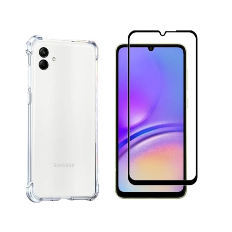 Kit 2x1 para Galaxy A05 - Capa Capinha Case Anti Impacto Transparente + Película de Vidro 3D Full Cover