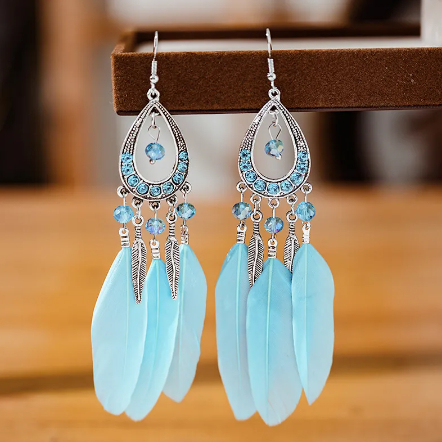 2024 Novos Brincos De Pena De Cristal Azul Liga Pingente De Jóias Boêmia
