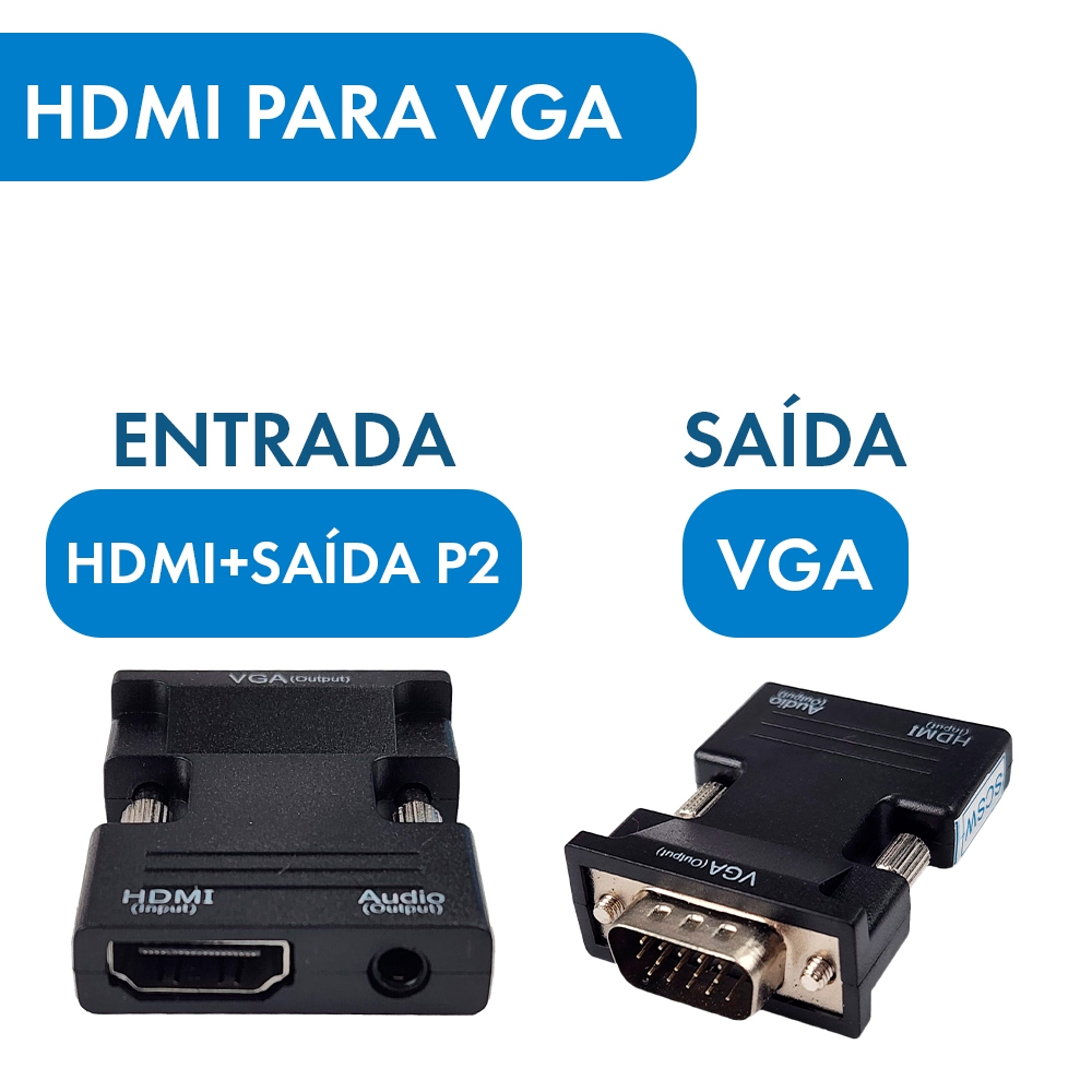 Cabo Adaptador Mini Conversor Hdmi Para Vga Tv Pc Notebook Com Saída P2 de áudio transmite vídeo HD Conversão