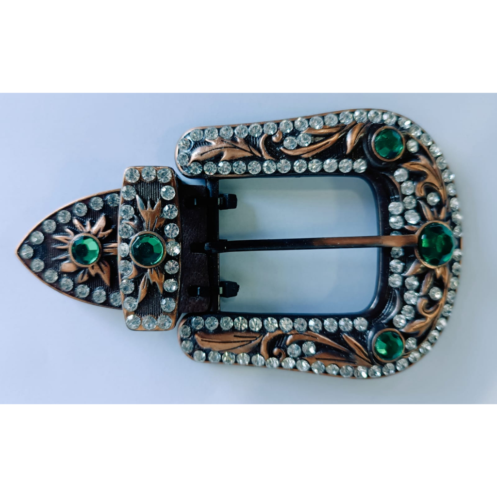 Kit Fivela, passador e ponteira com strass verde transparente ( fivela Country )
