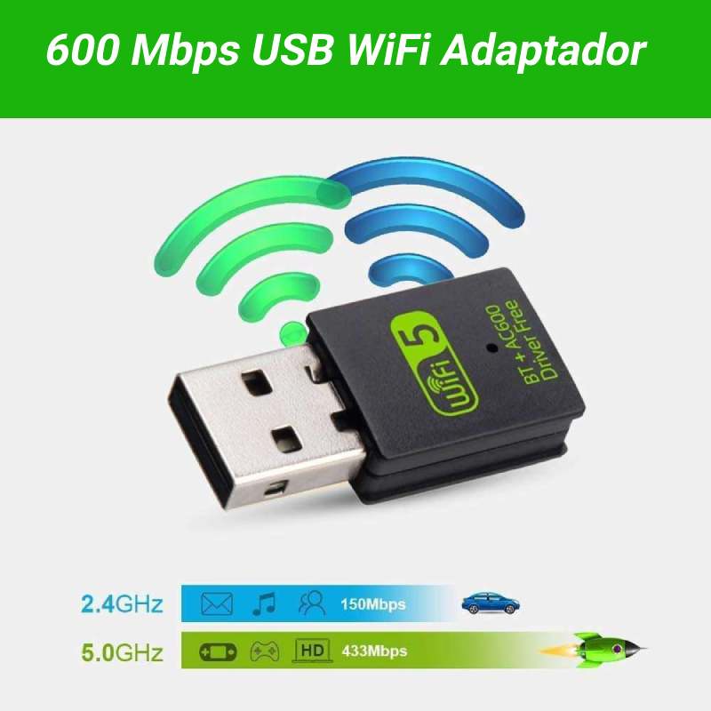 Adaptador WiFi USB 600Mbps Sem Fio Bluetooth Compatível 2 Em 1 Dual Band 2.4G 5Ghz