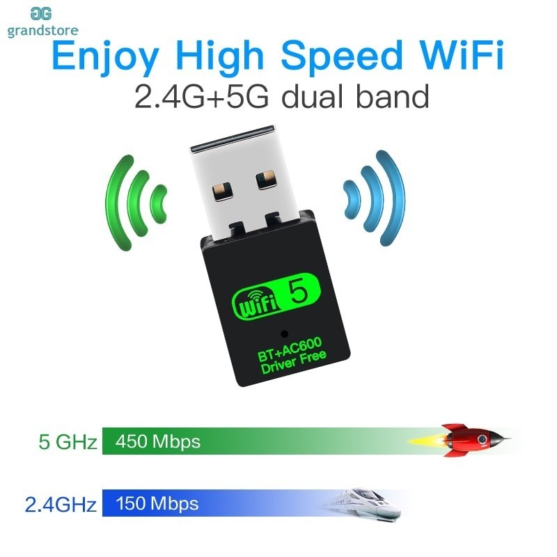 Adaptador GS WiFi USB 600Mbps Sem Fio Bluetooth Compatível 2 Em 1 Dual Band 2.4G 5Ghz