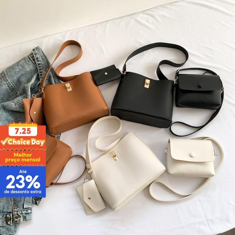 Moda Sólida Cor Sólida Conjunto de 3 peças Saco de 3 peças Saco de Mensageiro com Ombro Pequeno Quadrado