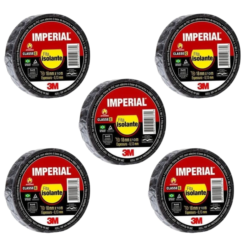 Kit 5 Unidades Fita Isolante 10 Metros Imperial 3M 18mm 750V Fita Super Flexível Alta Durabilidade