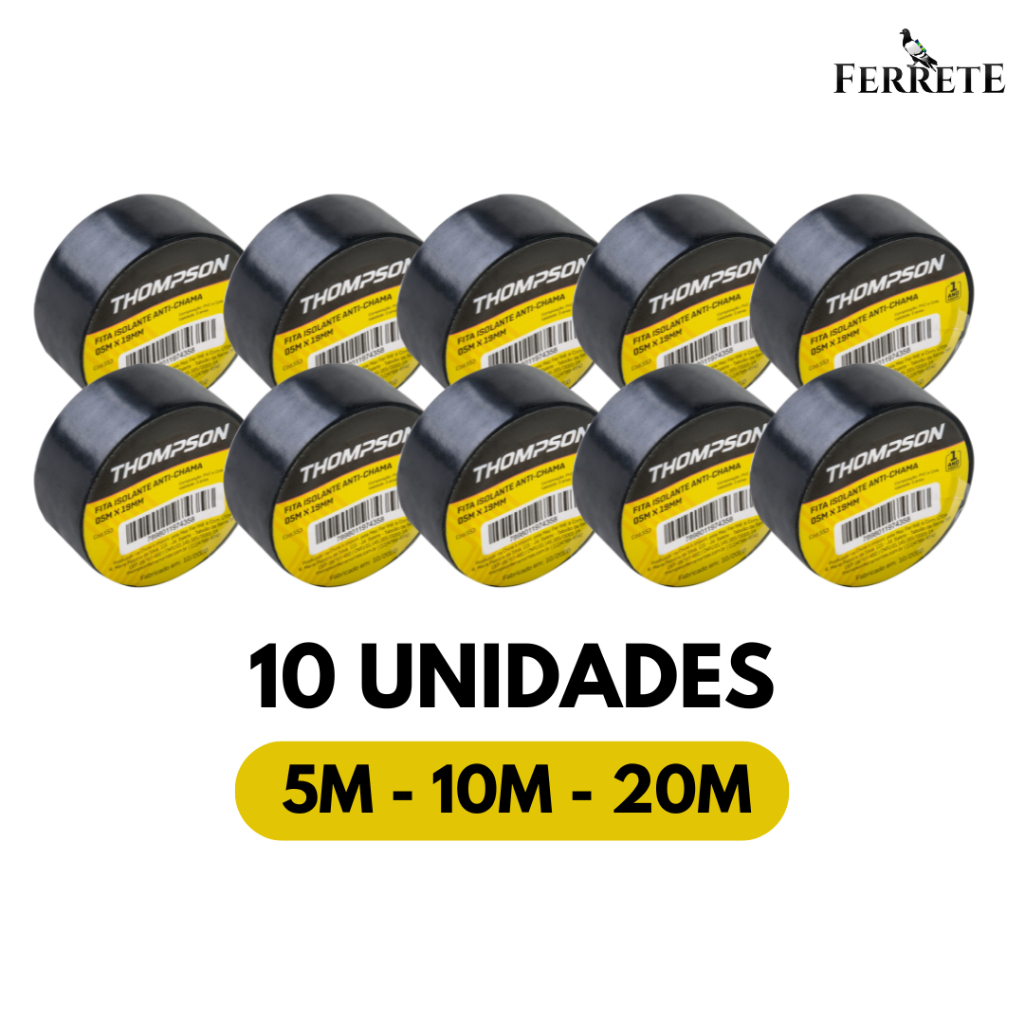 Kit 10 Fita Isolante Antichamas 5, 10 e 20 Metros 10 Unidades - Thompson