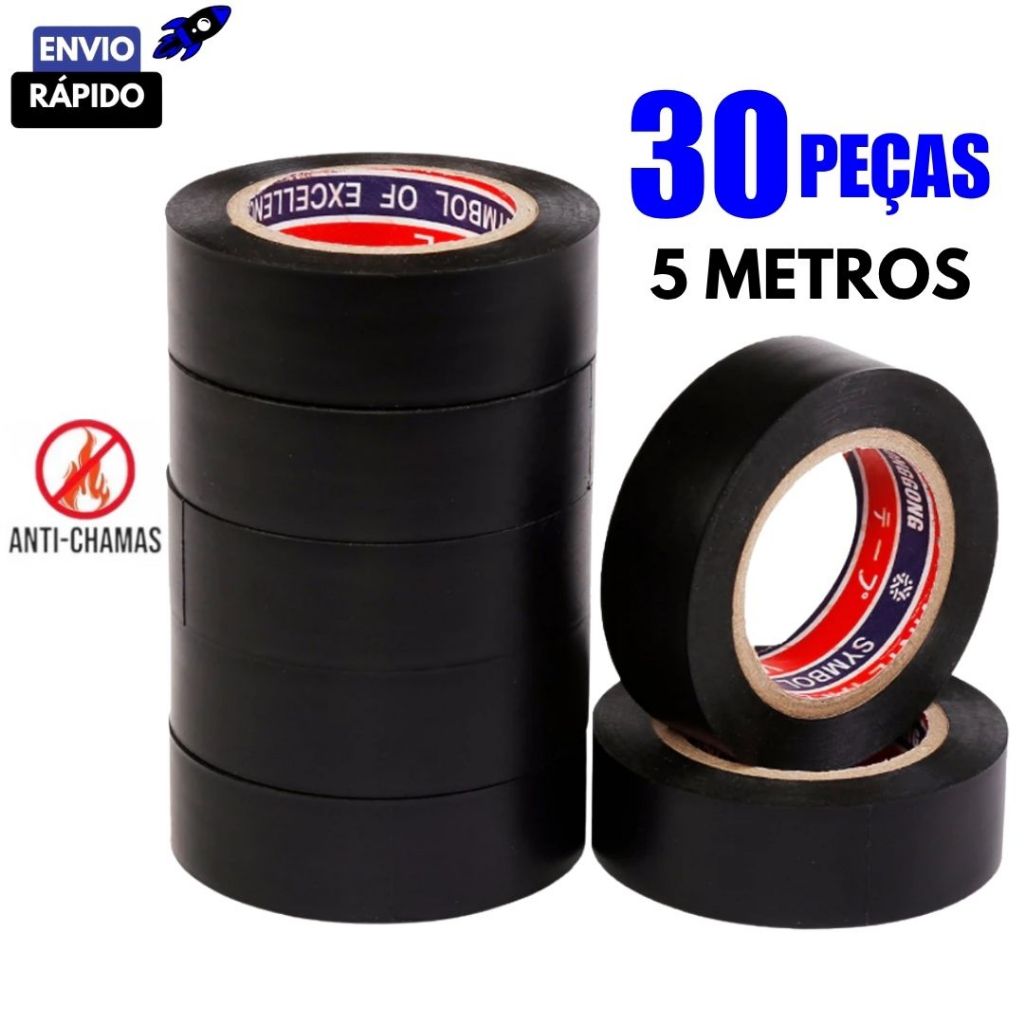 Kit 30 Peças Fita Isolante Antichamas Preta 5 Metros