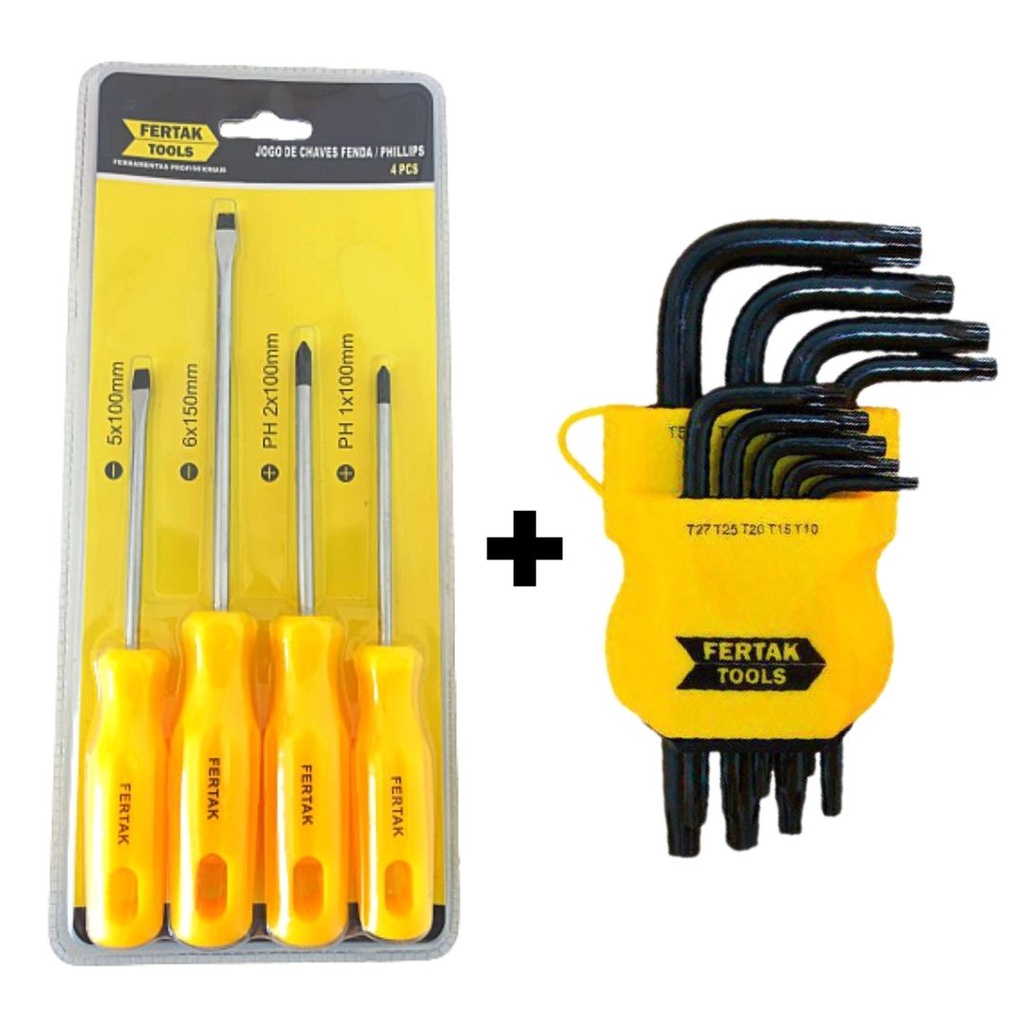 kit jogo de chaves de fenda phillips e torque caixa de ferramentas completa kit dia dos pais fertak