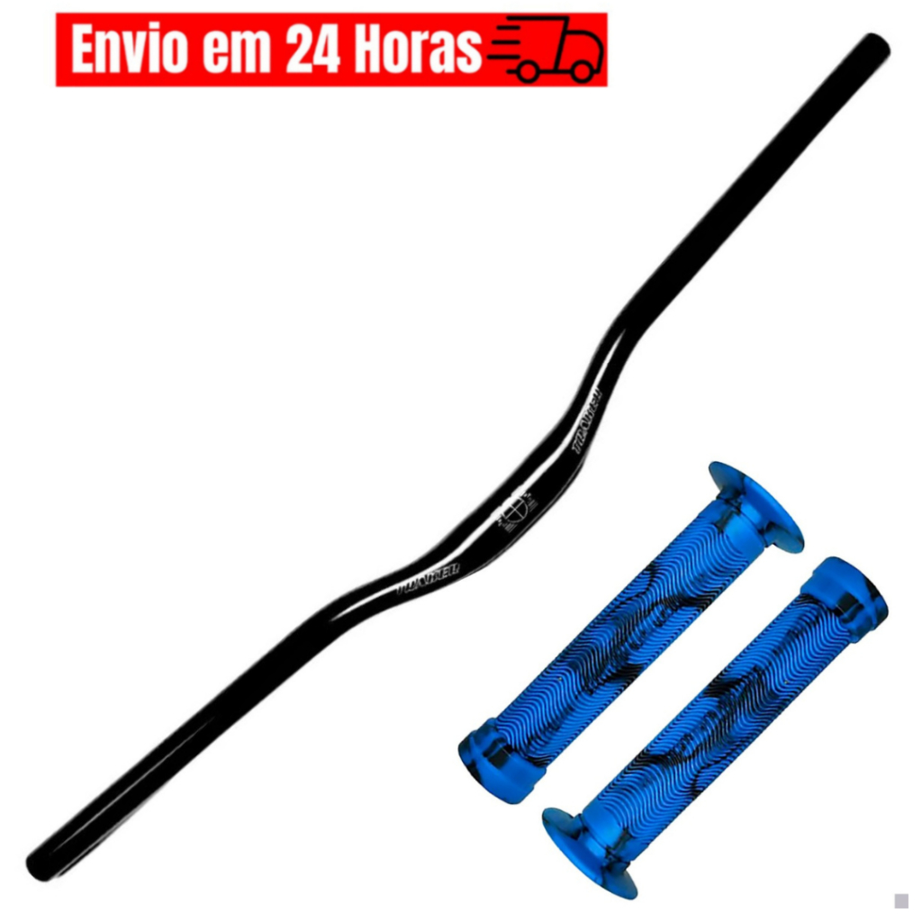 Guidão Mtb traker 31.8mm X 720mm Alumínio Curvo Cores Preto + Manopla Punho Luva Gios Gi-075h Bmx Freeride *cores*