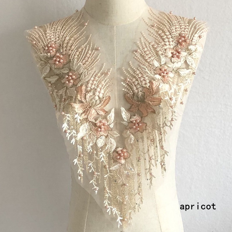 1pç 55 * 28CM Bordado Com Miçangas De Renda Patches De Bodície , Apliques De Strass Em Flores , Pescoço V Costurado Para Vestido De Casamento