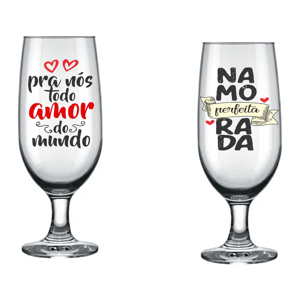 Jogo de Taças de Vidro 300 ml Nadir 2 unidades Para Casal Padrinhos Namorados