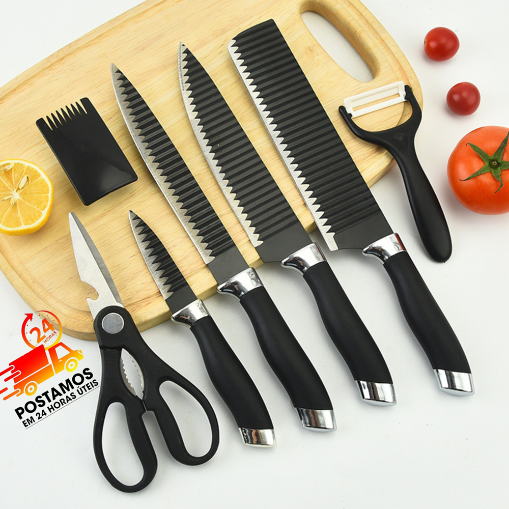 Jogo kit 6 peças Facas Descascador Tesoura Profissional Cozinha Gourmet Faca de Churrasco Profissional Antiaderente