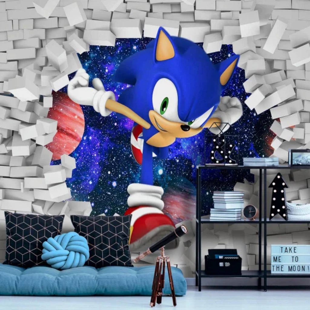 papel de parede adesivo sonic- papel de parede 3d - adesivo de parede - parede decorada -quarto infantil - foto mural -papel de parede para quarto - decoração Sonic