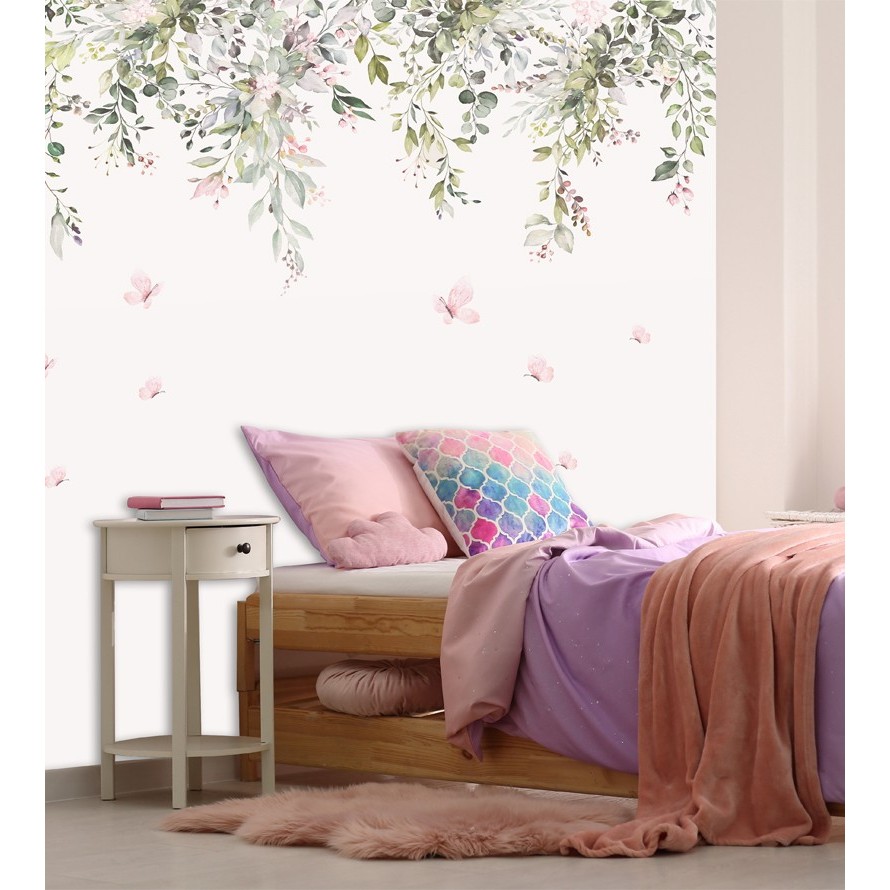 Papel de Parede Galhos e Flores Jardim Rosa Quarto Infantil de Bebê e Criança Personalizado m²