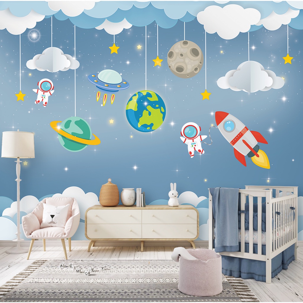 Papel de Parede Infantil Tema Espaço Astronauta Quarto de Bebê e Menino