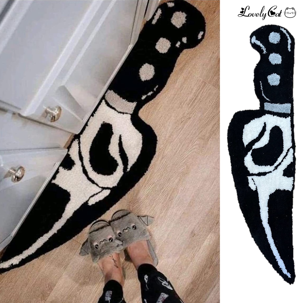 [Lllct] Tapete De Piso Anti-Derrapante Absorção De Água Horrorção Tema Padrão De Lâmina Em Forma De Cama Rug Frontal Decoração De Casa