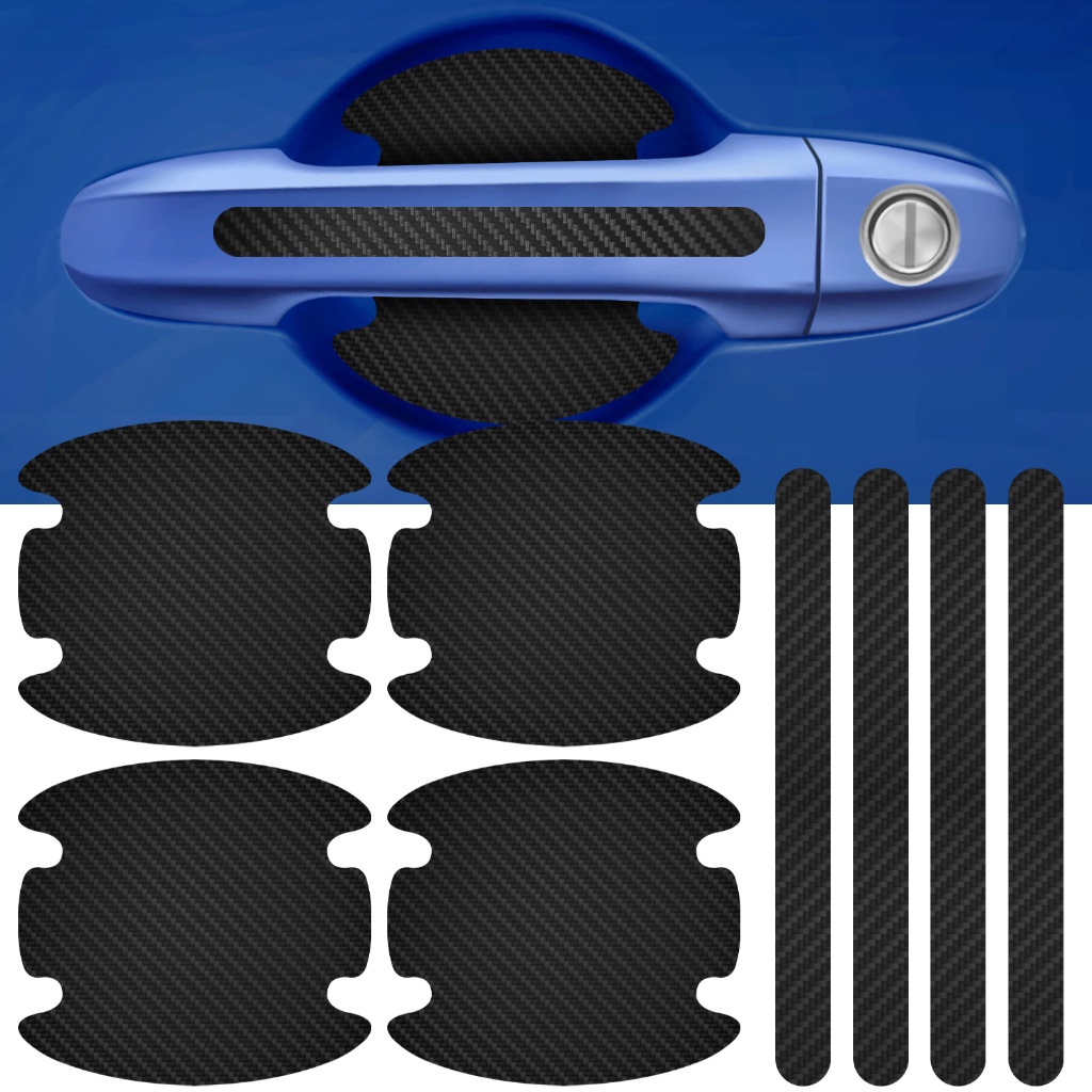 Kit Adesivo Protetor Maçaneta de Porta Fibra de Carbono Carro Anti Arranhões 8 Unidades
