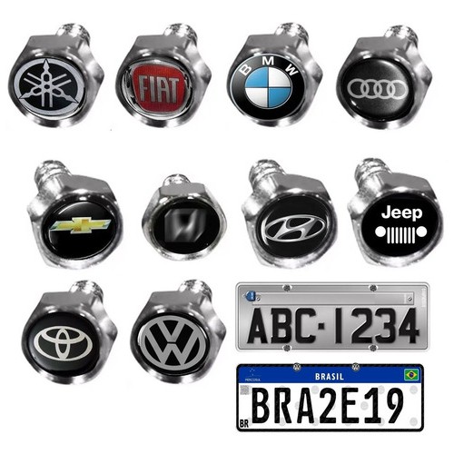 Kit Parafusos De Placa Cromado Emblema Resinado Todas Marcas