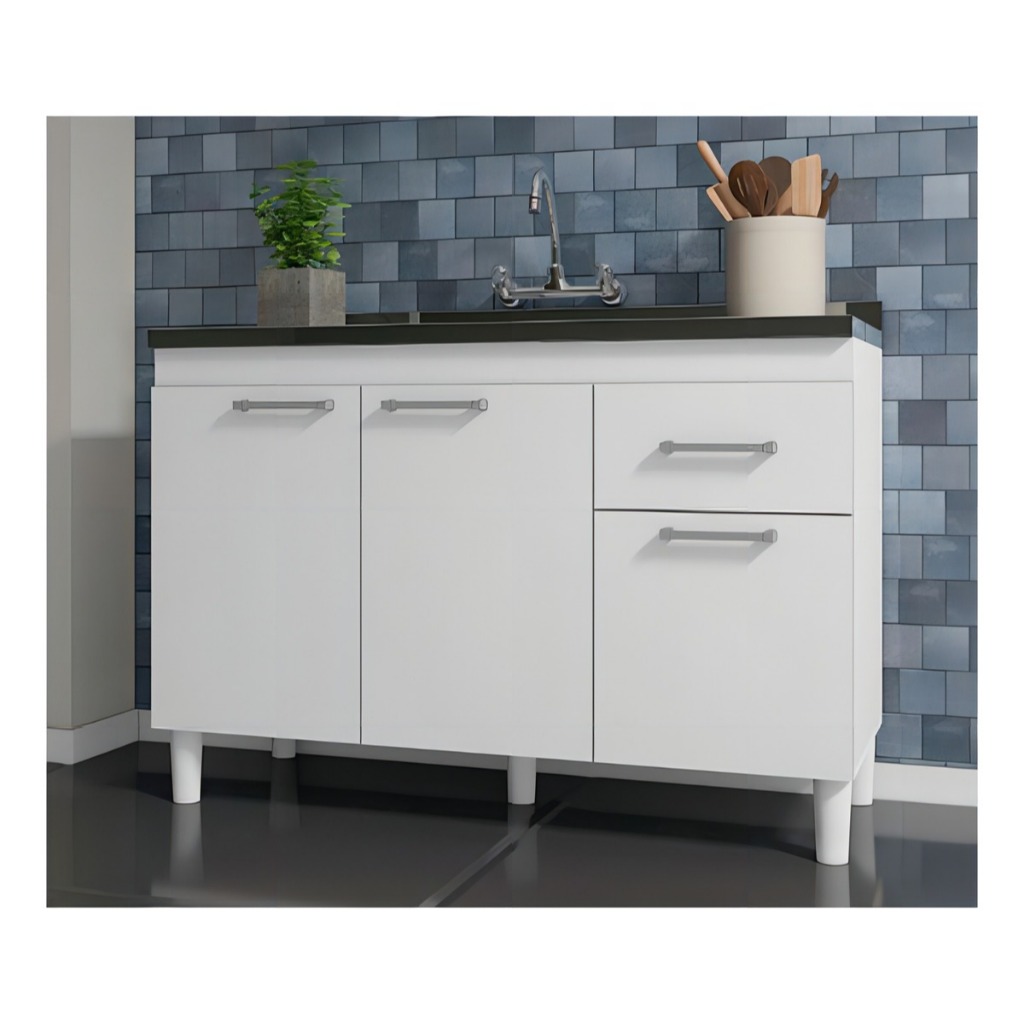 Balcão de Cozinha para Pia de 120cm Sem Tampo Suiça Fidelitá 3 Portas 1 Gaveta Branco