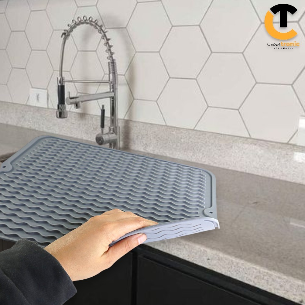 Tapete Escorredor De Louça Em Silicone Para Pia Mesa Cozinha Secagem Rápida