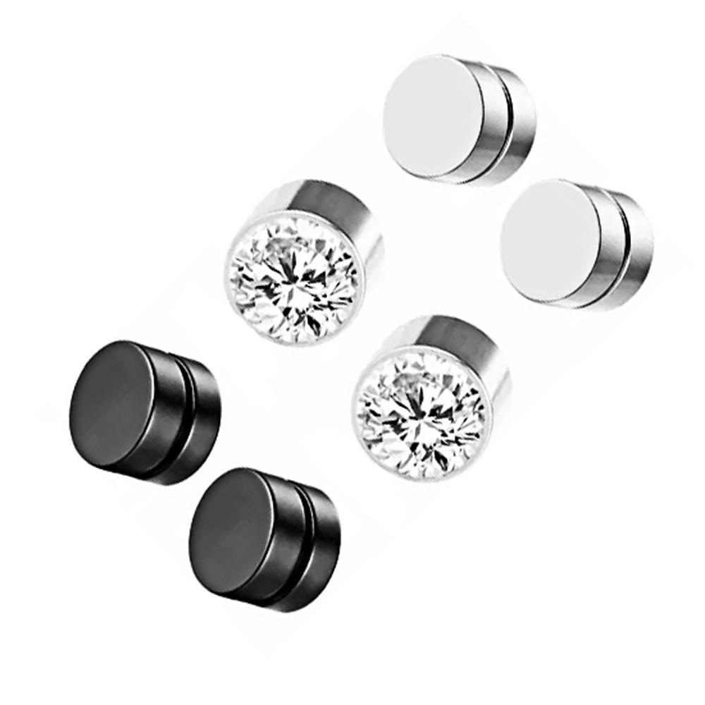 kit 3 Pares brinco de pressão masulino feminino prata preto imã magnético redondo