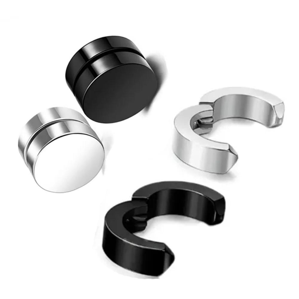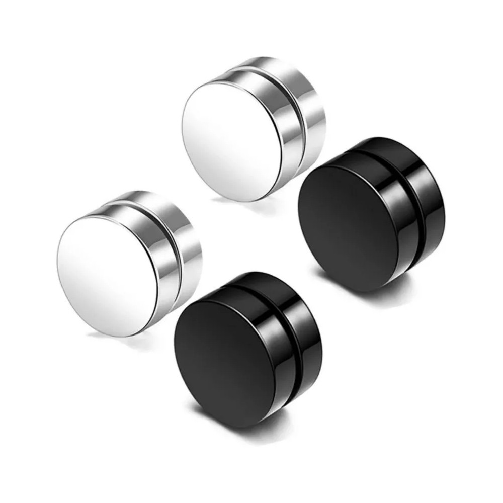 KIT 2 pares Brinco Imã Magnético Pressão Não precisa DE ter furo Masculino 8mm preto prateado