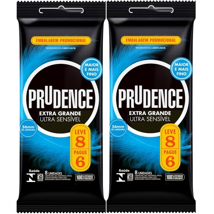 Camisinha Preservativo Prudence Extra Grande Ultra Sensível 56mm Leve 8 Pague 6