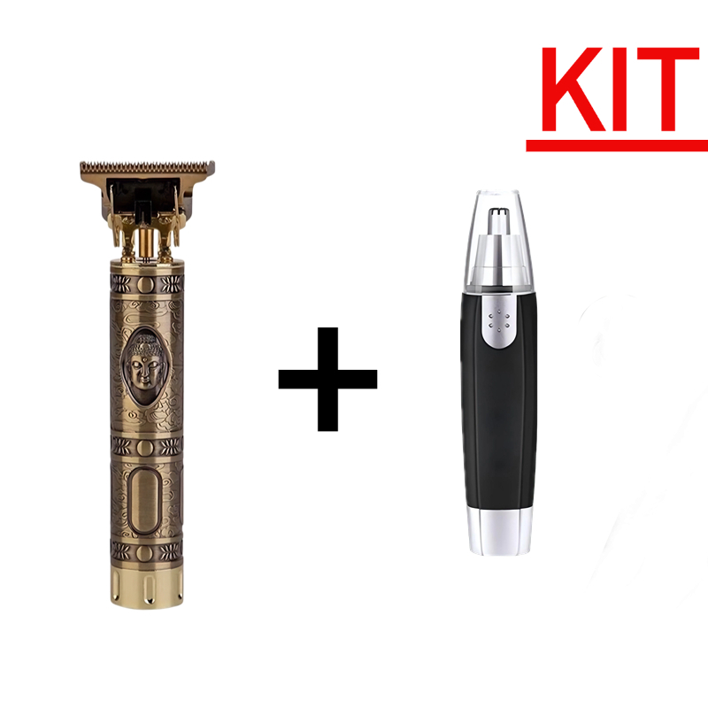 KIT Maquina cortar cabelo acabamento barbear barbeador eletrico pezinho vintage buda dragão t9
