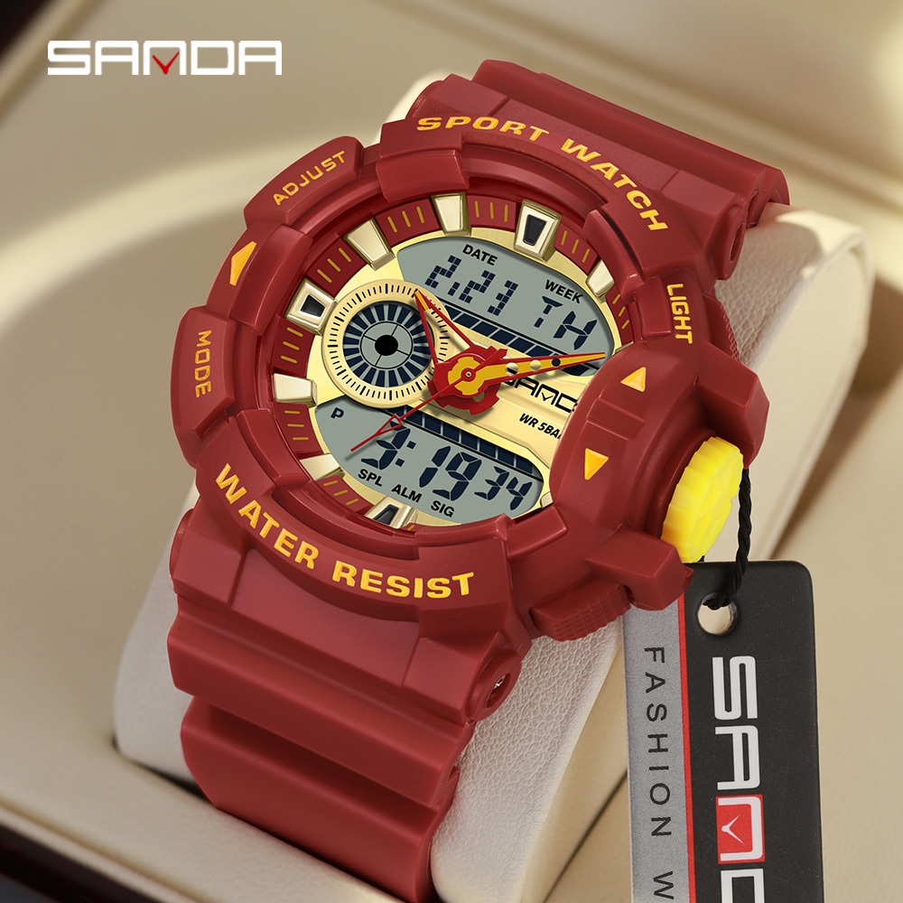 SANDA 3310 Relógio Eletrônico De Estudante De Luxo Esportivo Multifuncional À Prova D'água Luminoso LED Display Duplo Mi