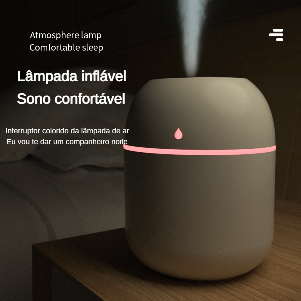 Mini umidificador ultrassônico de grande capacidade de 220ml, nano atomizador de luz noturna LED para carro, quarto, escritório