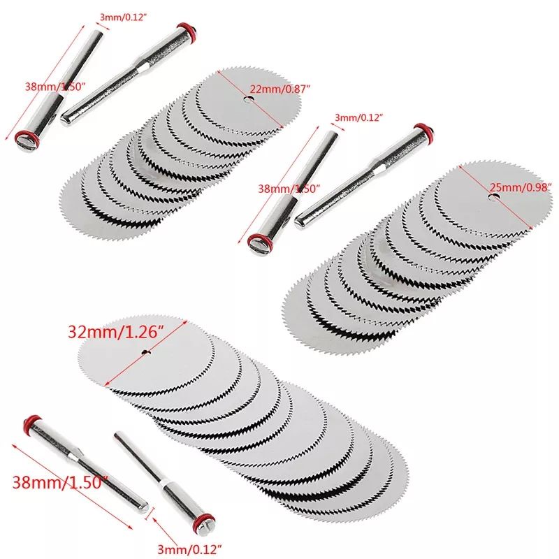 10 Mini Discos Serra 32mm Para Dremel Micro Retifica e 2 Hastes