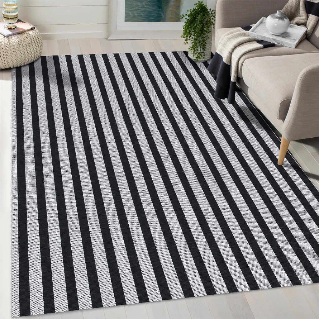 Tapete de Sala ou quarto Jacquard 2,00 x 1,40 com base antiderrapente - Zig Zag Preto e Branco