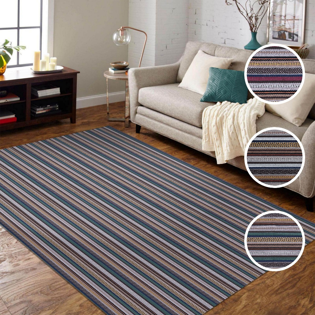 Tapete Grande Listrado Para Quarto Sala 1,40x2,00 Diversas Cores 100% Algodão