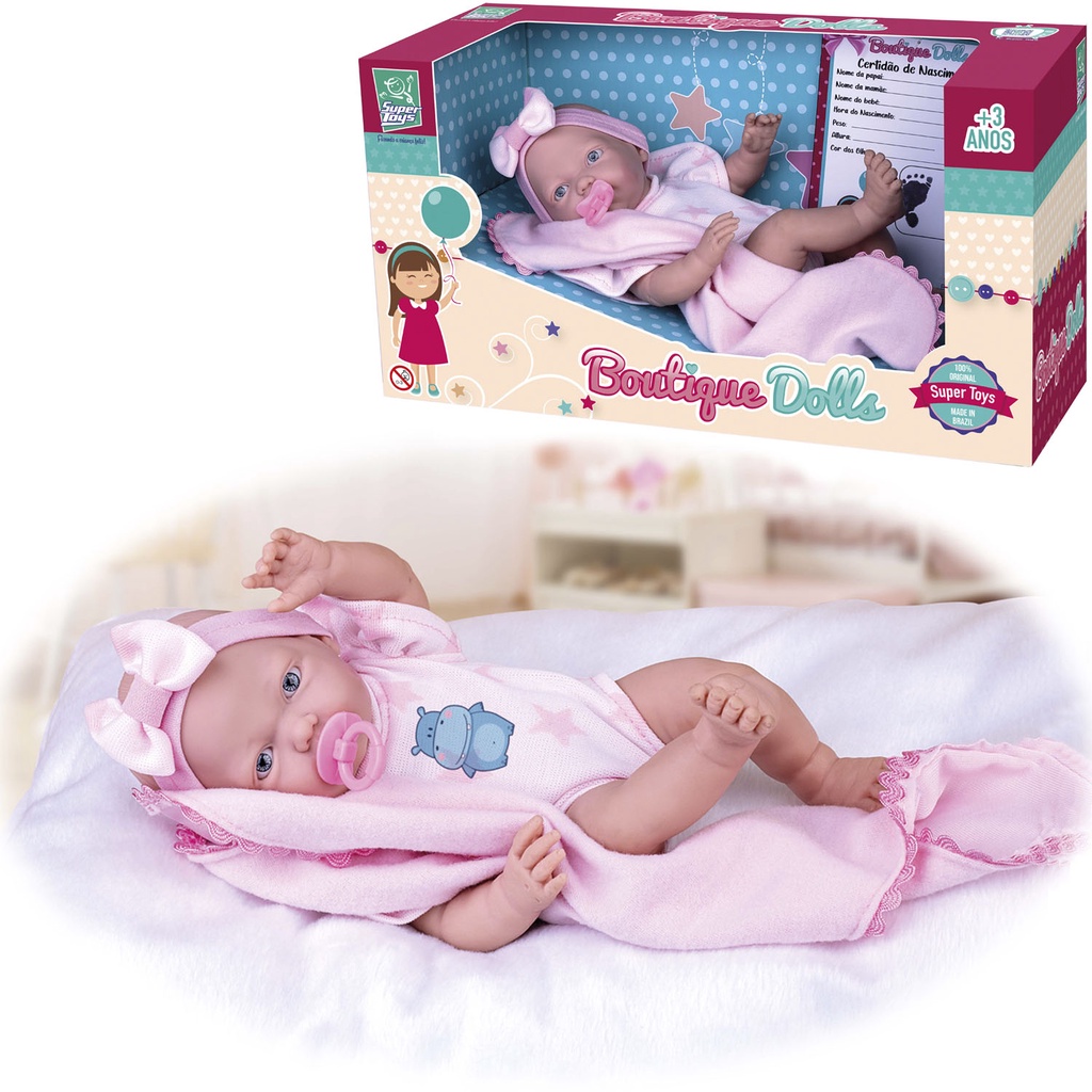 Boneca Bebê Boutique Dolls Tipo Reborn Com Acessórios - Super Toys