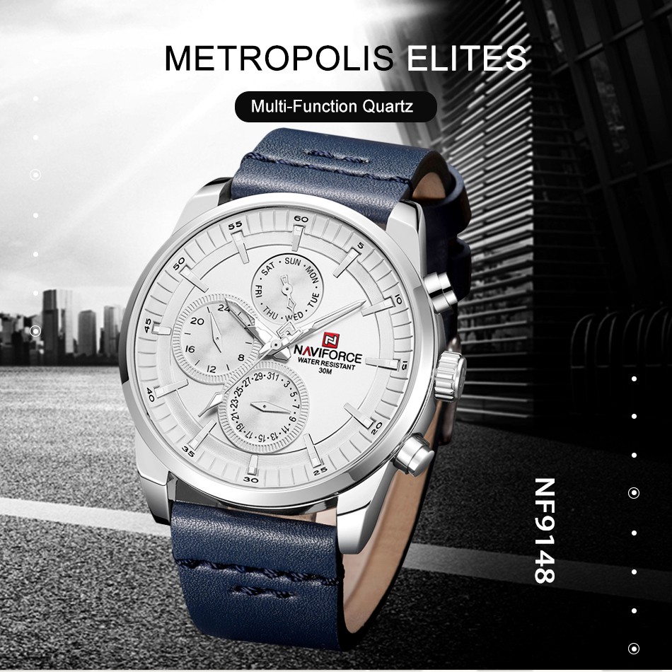 Naviforce 9148 Marca Homens Militares Relógios Esportivos De Couro Genuíno Cronógrafo À Prova D'água Relógio De Quartzo Data