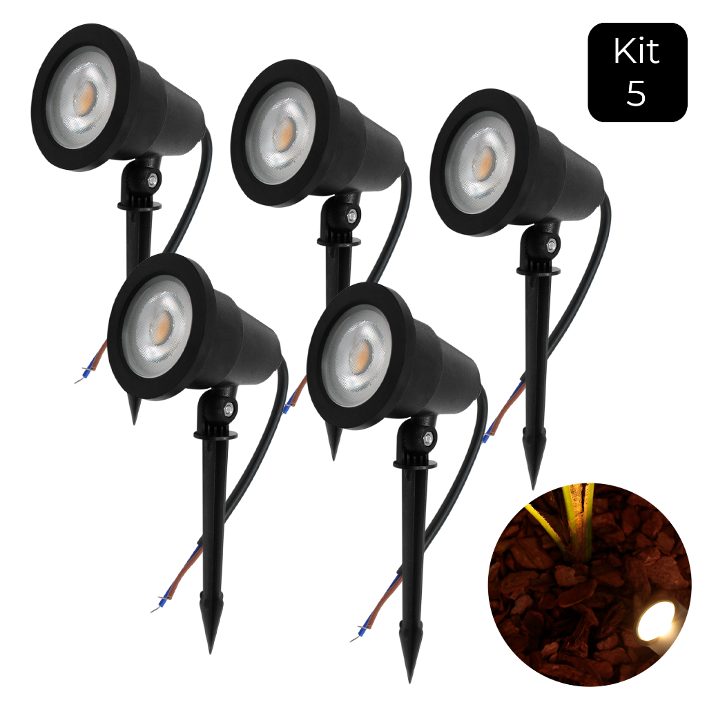 Kit 5 Luminária Espeto Jardim Com Lâmpada Led 7w Luz Quente