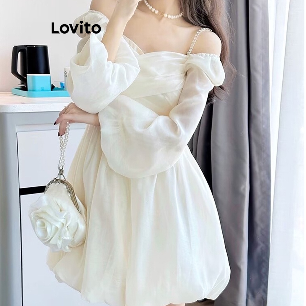 Lovito Vestido elegante com bainha lisa e babados para mulheres LBL16734