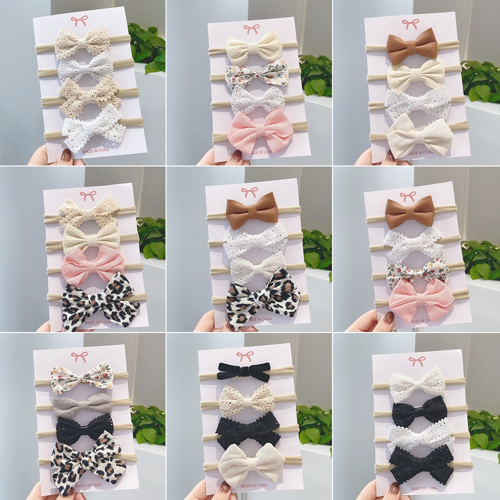 4 Pcs/Set De Novo Estilo De Renda Impressão De Faixas De Cabelo Bowknot Para Acessórios Doce Crianças