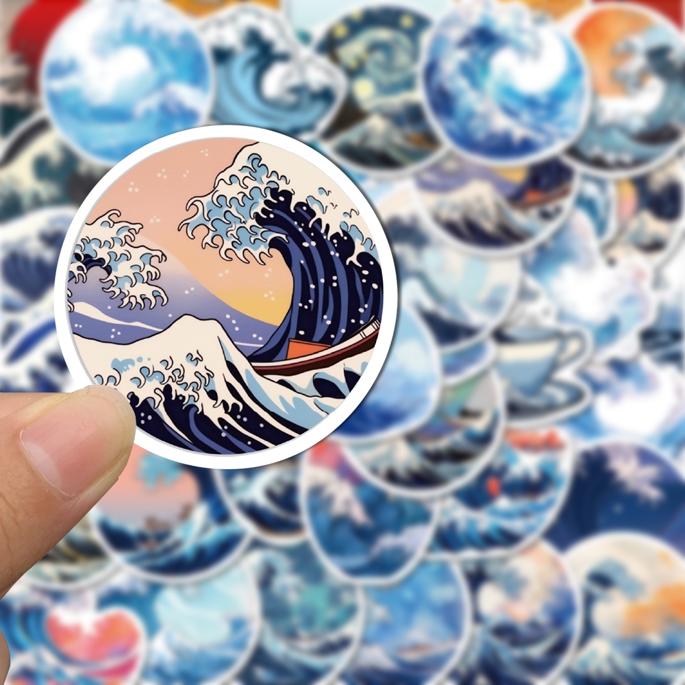 50pcs Adesivos De Desenho Animado ukiyo-e Com Padrões De Ondas Nas Água Requintadamente Projetados Para Fins Artísticos Manuais Telefones Celulares iPads À Prova D'água Copos De
