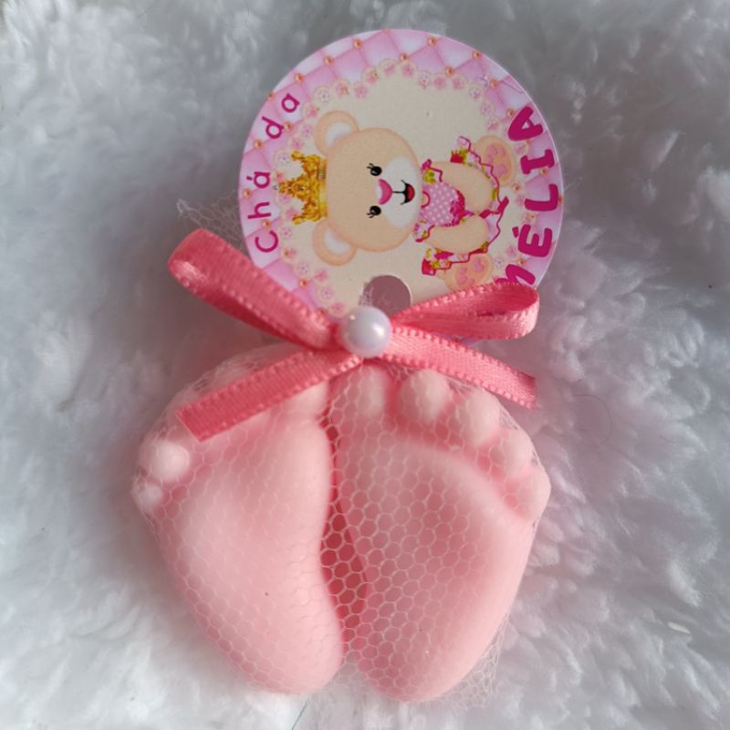 kit 30 Mini pezinhos (15 pares) lembrancinhas Chá Revelação Menina: Sabonetes Rosa
