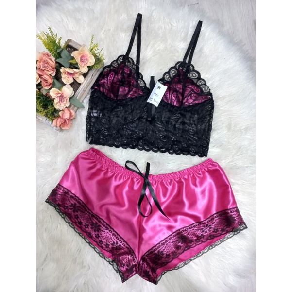 Tanga Short Lacradora de Tule Com Renda e Fita de Cetim Calcinha Lingerie de Luxo