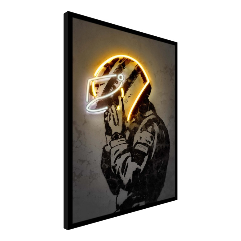 Quadro Decorativo Ayrton Senna Capacete Neon f1 Para Sala Quarto Hall