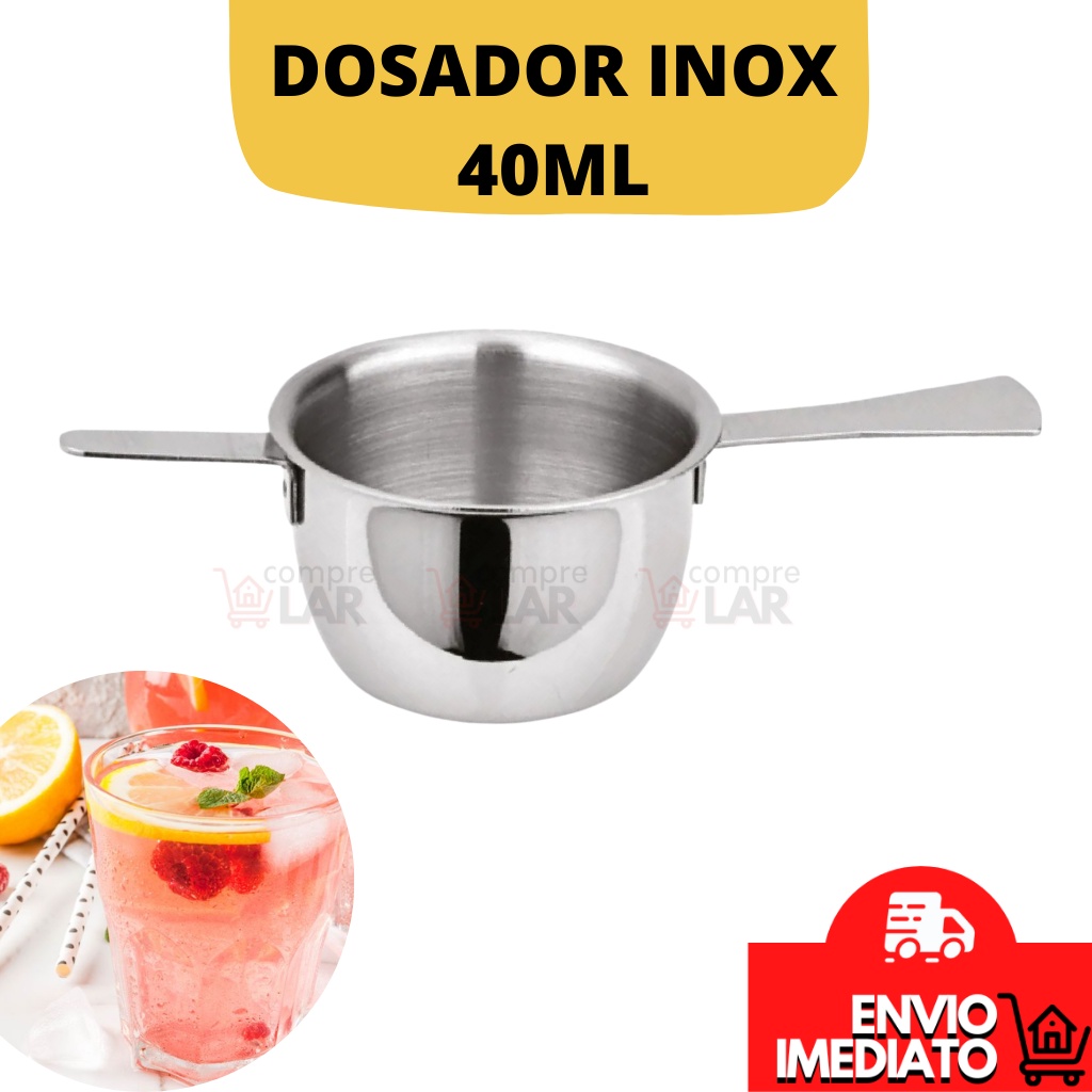 Dosador Medidor De Bebidas Aço Inox Com Suporte Copo Dosador Dose 40ml